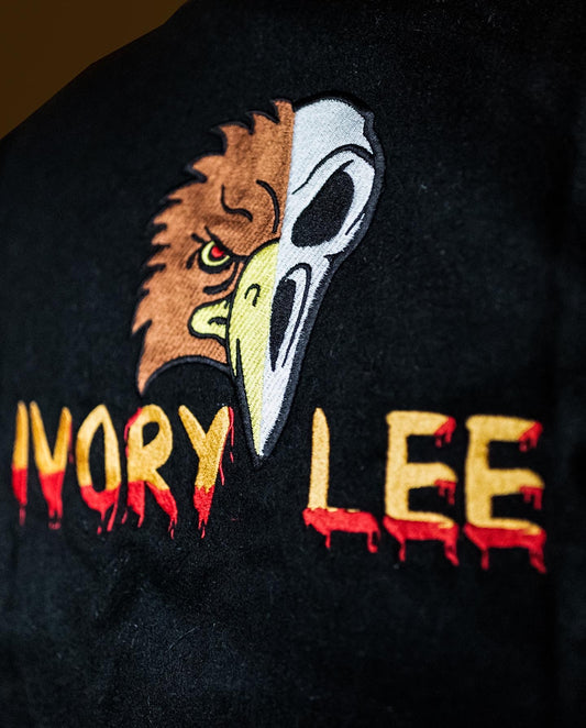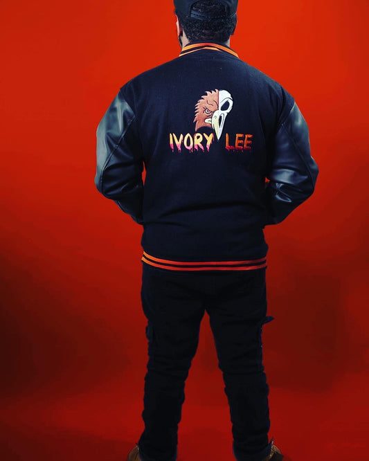 Ivory Lee's black & orange "Buried Alive" varsity jacket